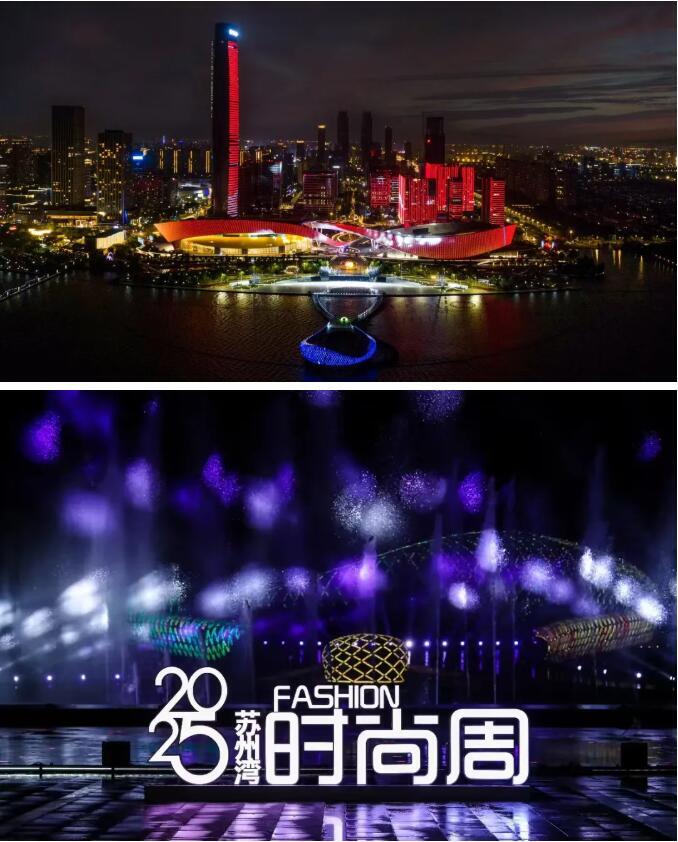 10月19日晚,苏州湾文化中心阅湖台广场流光溢彩,2025苏州湾时尚趋势发布会在此盛大举行。