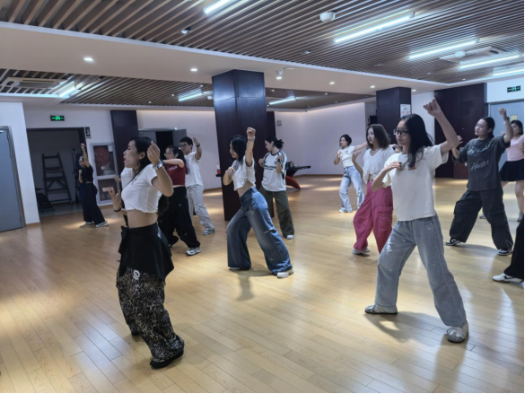 “双肩打开,提胯、摆手……”爵士舞课堂上,老师一边示范,一边仔细调整学员的动作姿势。伴随着音乐节拍,大家逐渐放松身体,跟上节奏,整个课堂氛围活泼融洽。值得一提的是,爵士班中有不少都是连续多期参与的老学员,他们表示,老师的教学风格生动有趣,课堂互动设计贴心,在这里跳舞不仅是学习技能,更是释放压力的好方式。“下班后能和兴趣相投的伙伴一起跳舞活动,整个人都轻松了!”一位学员笑着说道。