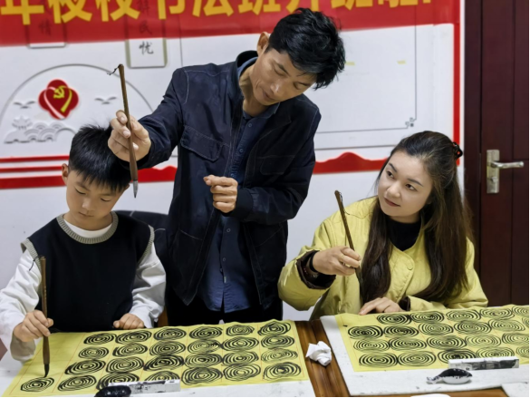 书法教室内墨香淡淡,亲子书法课在安静温馨的氛围中进行。赵老师从最基础的执笔姿势教起,耐心地为家长和孩子们演示运笔技巧。在这里,学习不只是技能的传递,更是亲情的交融与陪伴的升温。赵老师还会根据每位学员的基础情况灵活安排教学进度。越来越多的家长也加入进来,与孩子共同练字、一起成长,真正体现了“亲子共学”的课堂初衷。