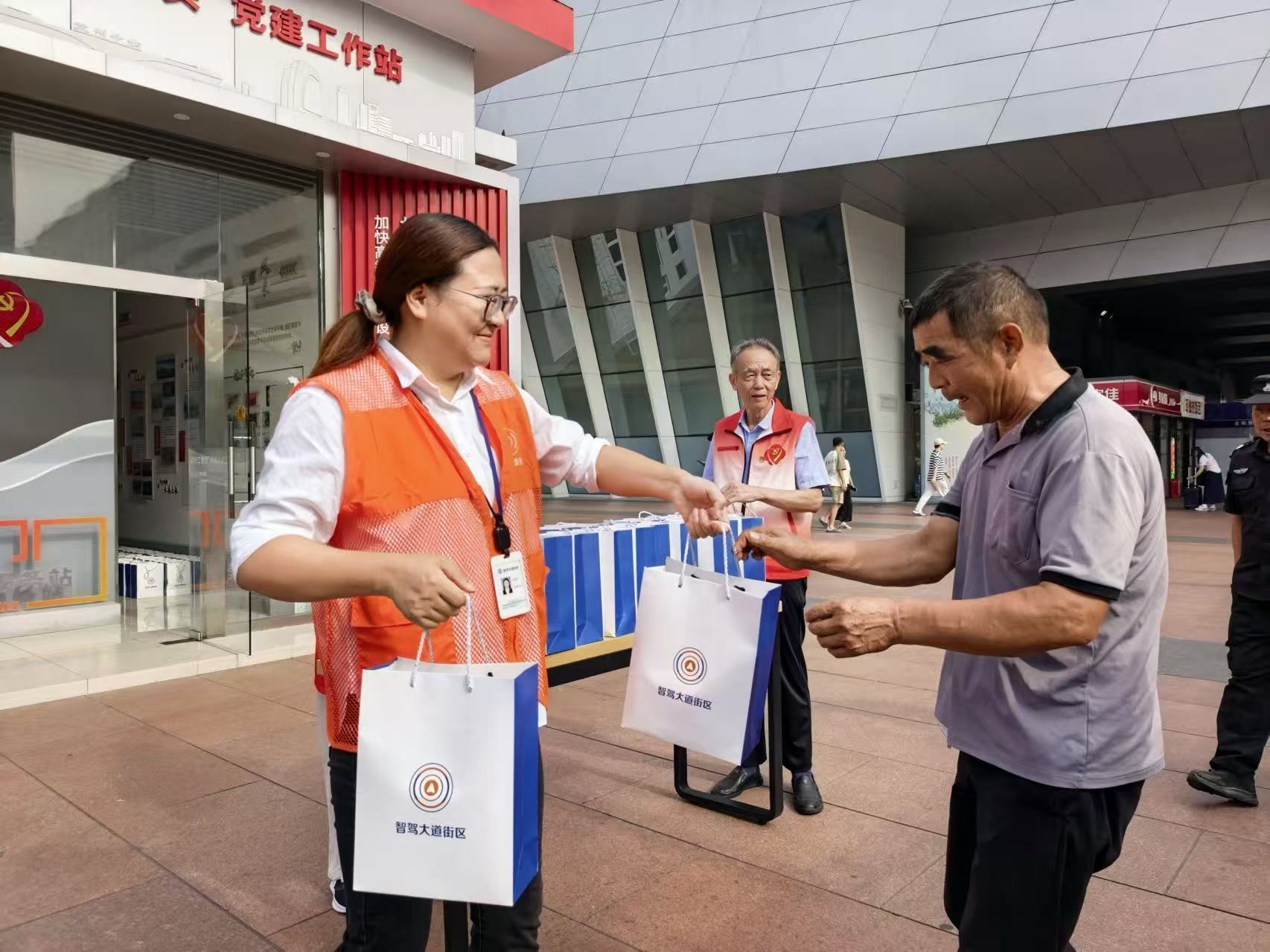 国庆中秋双节期间,街区党委联合多方力量,发起“温暖双节·苏州有礼”暖心行动。党员与青年志愿者携手,为往来旅客和环卫工人送上包含饮用水、小风扇、苏式点心及手写书签的礼包共计160份。一份礼包,一声问候,拉近了人与城之间的距离,也让“苏州欢迎您”的城市温度在细节中悄然流淌。