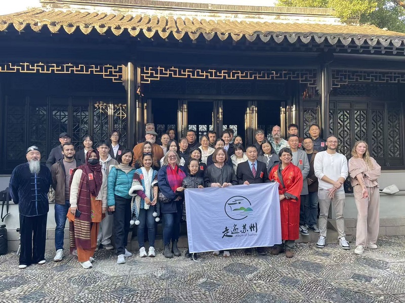 11月29日,“走遍苏州”文化交流研学团队第九周年庆典在木渎古镇严家花园温情启幕。来自美国、英国、巴基斯坦、泰国、俄罗斯等多个国家的 10 位外国友人,与苏州市木渎文化旅游集团、苏州科技大学外国语学院英语协会的团队代表齐聚一堂。外籍友人们化身“文化探究者”,循着江南园林的细腻肌理,在此开启一场深度交融的江南文脉研学之旅。