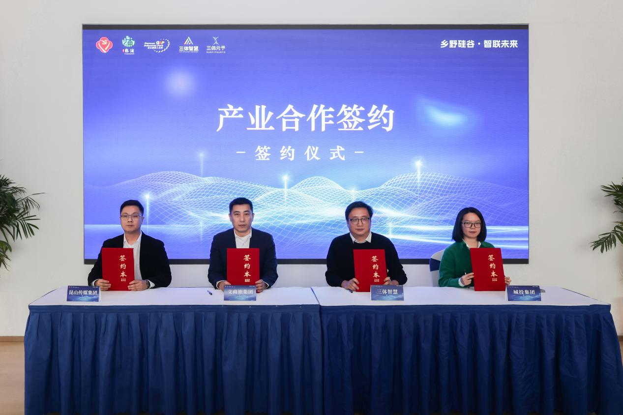 合作是发展的基石。活动现场,签约环节亮点纷呈。昆山融媒体中心(传媒集团)、城投集团、文商旅集团与三体智慧携手,共同筑牢数字文旅产业的载体、运营与宣传底盘。沪光股份、中国铁塔、鲲鹏无人机与三体元予达成合作,将为项目提供智能装备、低空科技与通信保障等硬核技术支持。此外,苏州工学院研究生工作站正式揭牌,打通产教研用链条,为产业发展输送高素质人才,为科创兴村提供人才保障。