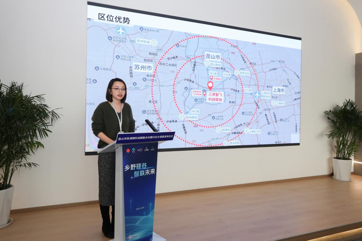 12月29日,“乡野硅谷・智联未来”科创赋能乡村振兴五大场景发布仪式在苏州昆山张浦镇尚明甸村举办,聚焦“总部楼宇、智飞营地、智慧乡村、人才社区、数字文旅”五大场景,搭建科创赋能乡村振兴的合作桥梁,为区域高质量发展注入新动能。昆山市委常委、组织部部长孙勇,市人大常委会党组成员秦珊珊,市科技镇长团团长于潜驰,市委组织部副部长张岩,张浦镇党委书记王超出席活动;苏州农发集团有关领导,昆山市相关部门、单位及各区镇分管领导,沪光股份、中国铁塔、鲲鹏无人机、三体智慧、三体元予、苏州工学院代表,张浦镇领导陈敏雅、张明、仇育军、吴钢、陈映如及相关单位负责人参加活动。