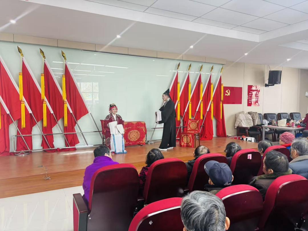 随后,经典沪剧《夫妻相商》精彩开演,婉转的沪剧唱腔、跌宕的剧情演绎,既是丰富群众精神文化生活的具体举措,也让戏迷们在家门口过足了戏瘾。恰逢春节临近,村里特意用这份传统戏曲的美好,为辖区老年朋友送上一份特殊的新春祝福,把温暖与文化关怀送到村民心坎上。