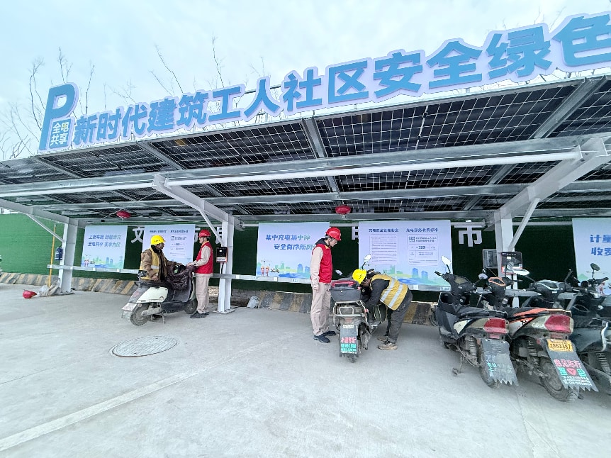 中国江苏网讯 2月13日,苏州高铁北站新时代建筑工人社区内,一座集电动自行车与汽车充电于一体的“全电共享·安全绿色充电车棚”正式建成投用。这座被工友们亲切称为“工友车棚”的设施,旨在系统解决苏州高铁北站扩建工程一线建设者“充电难、充电贵、充电不安全”的切实困扰。