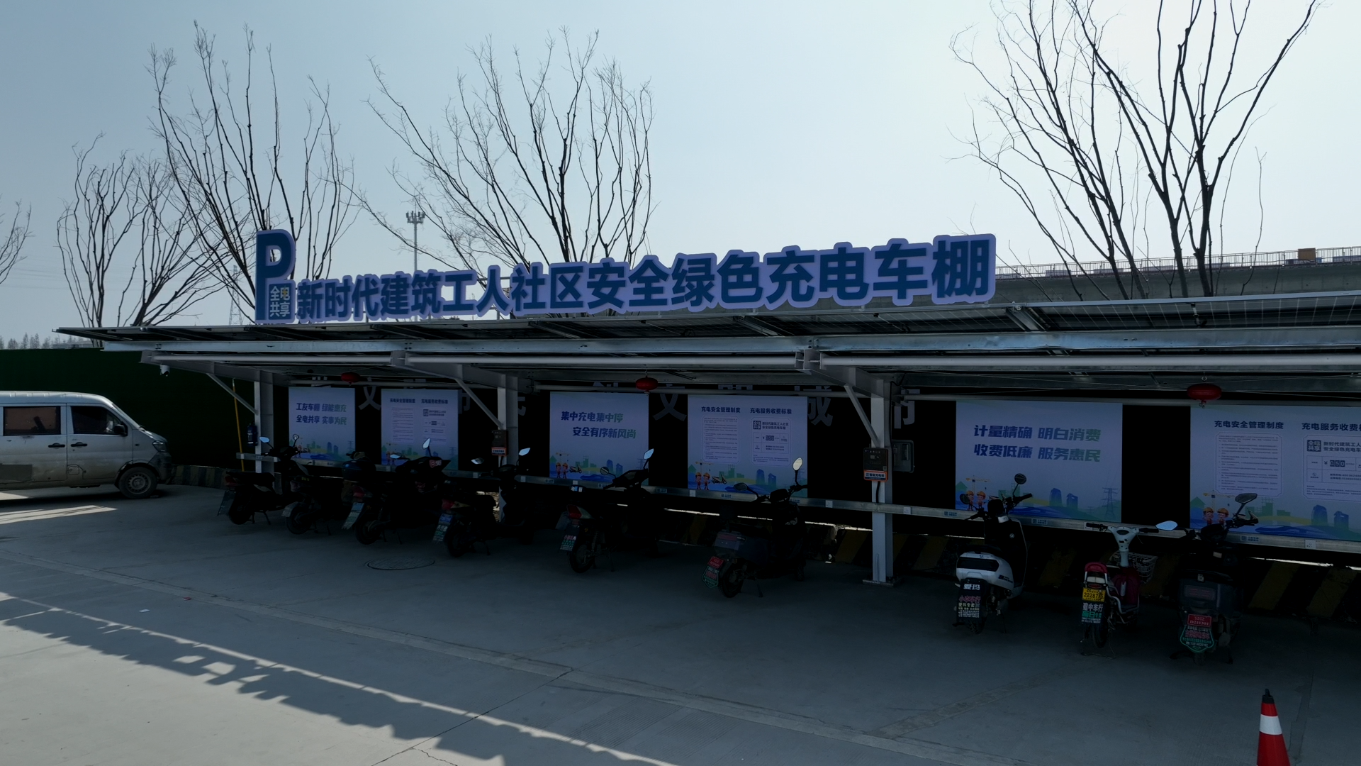 2025年10月起,国网苏州供电公司开展走访服务,发现社区内原有充电设施分散、费用较高且存在安全隐患。为此,国网苏州相城区供电公司迅速成立专班和党员突击队,将“光储充”一体化技术进行集约化创新应用,快速推进车棚建设,及时解决这个“工人之家”的充电难题。