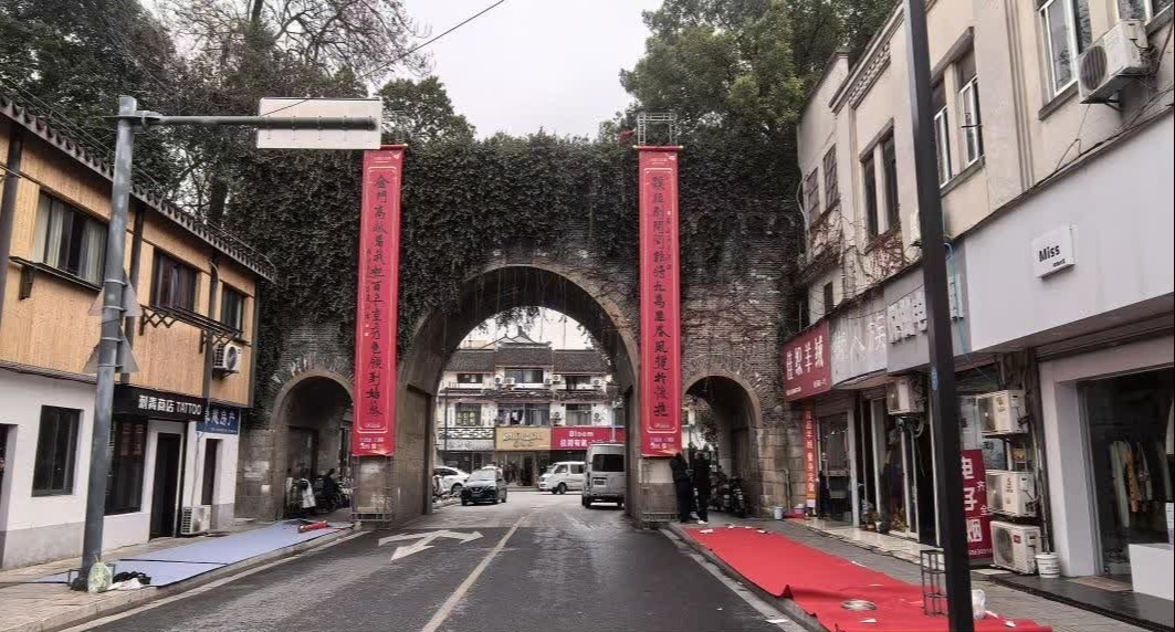 今年立春,古城苏州的九座城门均挂上了兼具共性与个性的春联。其中,金门城头上的一副32字长联格外引人注目。