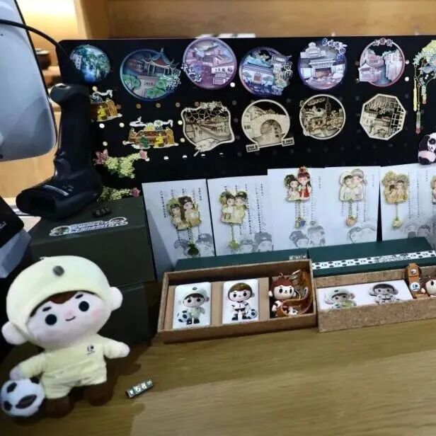三层小楼,惊喜满满:霹雳布袋戏人偶超有戏,俏皮的昆曲娃娃冰箱贴更是萌到想立刻带走。手作木刻飘着淡淡木香,绣贴、瓷板画错落摆开,逛起来趣味十足。