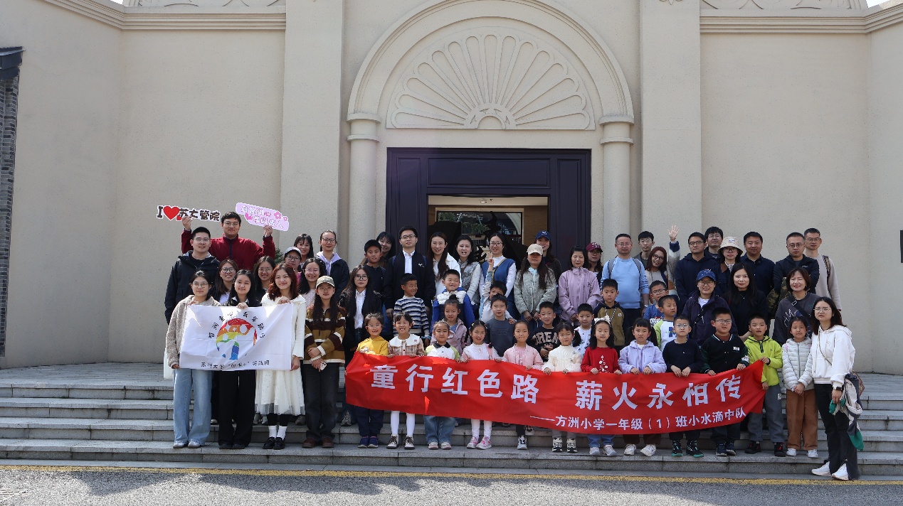 临近清明节,苏州大学政治与公共管理学院团委与苏州市姑苏区锦帆路社区、苏州工业园区方洲小学一年级(1)班小水滴中队联合策划“铭记英烈,薪火相传”大手牵小手红色研学活动,以中共苏州独立支部旧址为主场,在苏州大学“哲学+”实践团青年讲解员的深情讲述中,小队员们沿着“青春永燃”学习社线路,沉浸式感受感悟“青春与信仰”的力量。