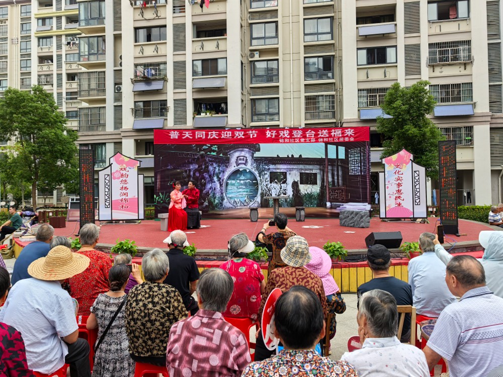 2023年6月,社区将党群闲置空间改造为“锦和戏苑”,孵化挖掘居民能人、集结戏曲爱好者、联动戏曲协会资源,建立“每月一场红戏、年均超14场”常态化演出机制。