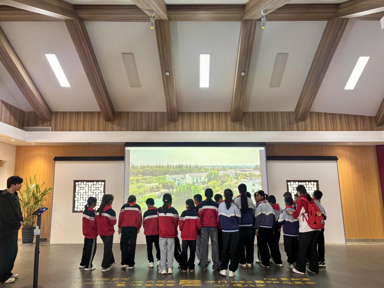 研学的脚步不止于校园。师生们走进白墙黛瓦的金华村,沉浸式感受江南新农村的烟火诗意。孩子们踩着青石板路漫步,聆听乡村的振兴故事,观赏水乡的春日盛景,眼里满是新奇,欢声笑语伴着鸟语花香洒满村落。