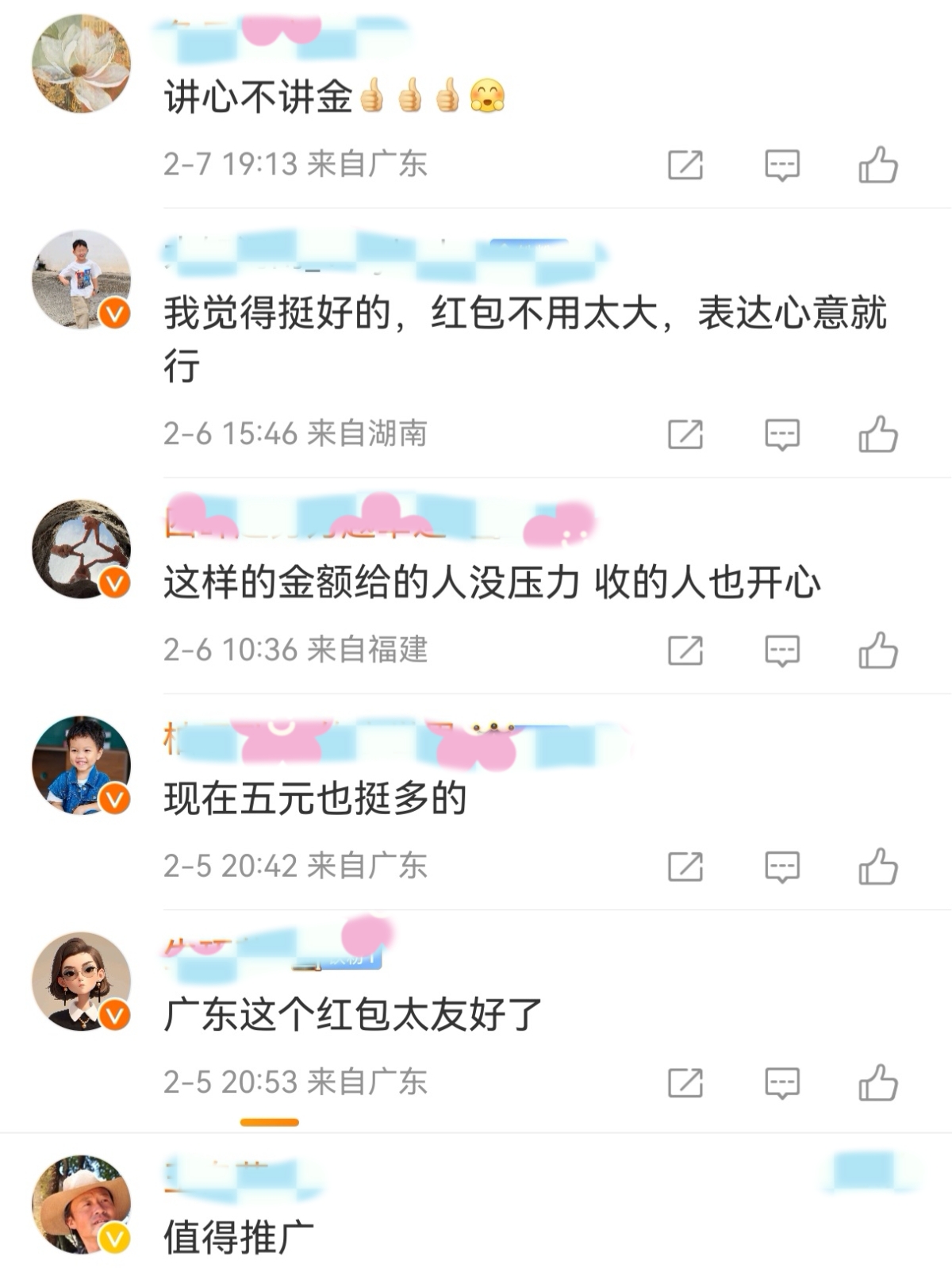 打开各大社交平台的评论区,满屏都是网友们的点赞和留言,大家直言这种模式让拜年回归了最本真的轻松氛围,没有多余的负担,只有纯粹的欢喜。有人留言“讲心不讲金”,有人直呼“值得推广”“广东这个红包太友好了”,还有不少网友跟风“跟上队形”,甚至有广东本地网友俏皮叮嘱“不要破坏广式利是的规矩啊,心意到了就好”。这些简单又真诚的留言,满是大家对于轻松过年的向往。