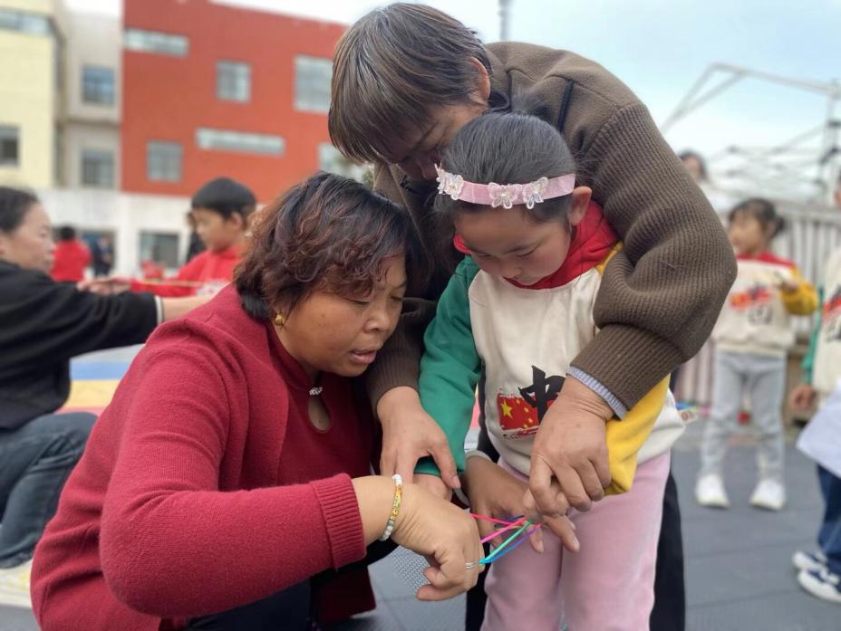 “抬轿子”“弹弹珠”“滚铁环”“掼元宝”“翻花绳”——一系列承载着祖辈童年记忆的传统民间游戏,让活动现场变成了欢乐的海洋。游戏间隙,孩子凑在祖辈耳边说“爷爷您教得真好”“奶奶我们再玩一次”,亲昵的话语让祖辈脸上笑开了花。欢声笑语中,传统游戏不仅成了连接祖孙童年的纽带,更让代际情感在互动中悄然升温。
