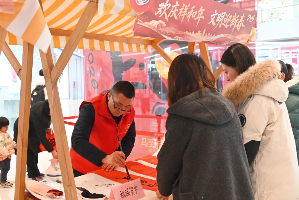 墨香漫街巷,非遗润新春。2月5日下午,一场以“欢庆祥和年·文明迎新春”为主题的新春送福活动,在中骏商圈·新时代文明实践街区温暖展开。本次活动由京泰路街道新时代文明实践所主办,泰州中骏世界城、泰州市大城小爱公益中心协办,通过墨香与非遗的当代对话,让传统年俗在现代商业空间中生动复苏。