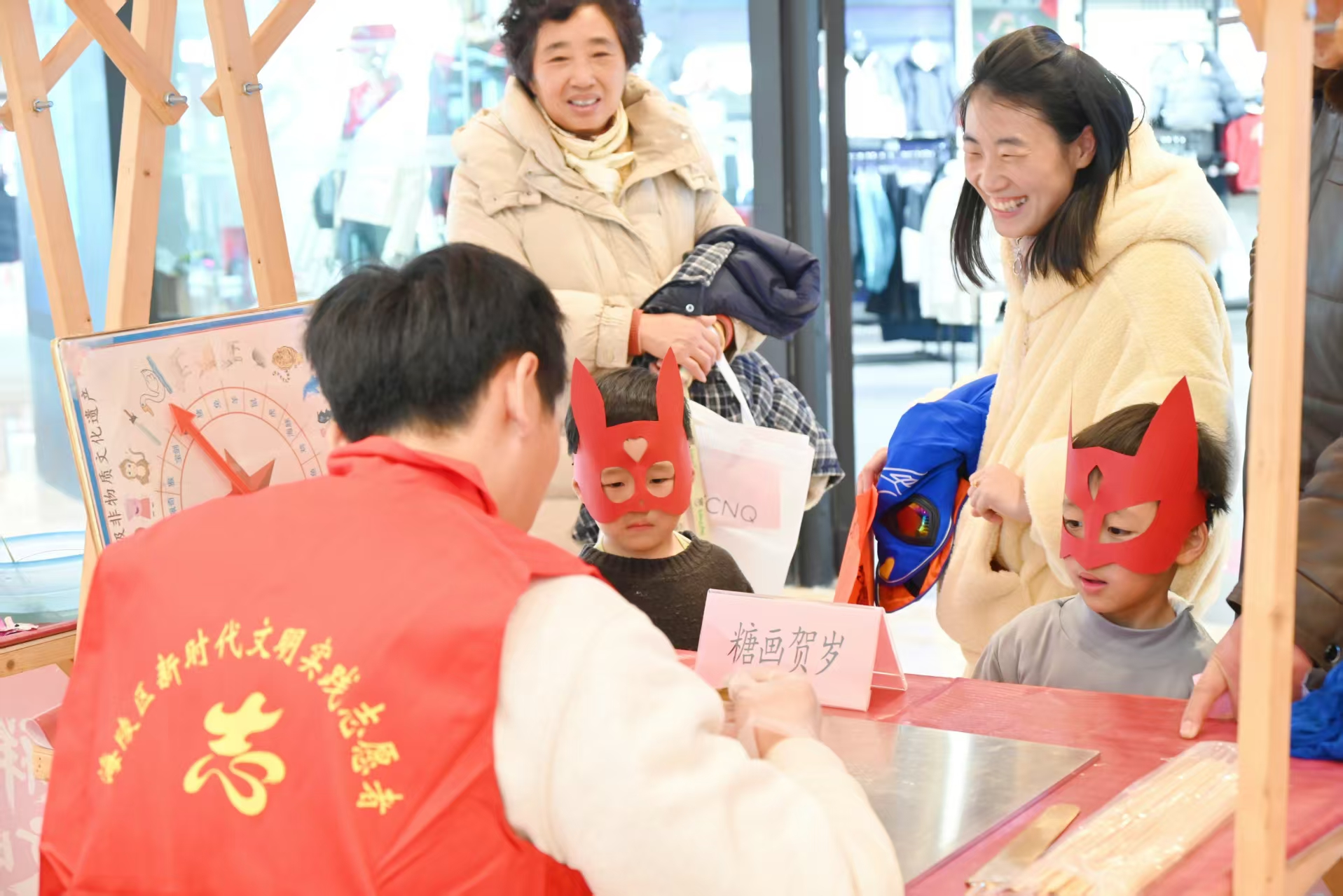 活动还巧妙融入文明实践激励模式:居民通过扫码积累“文明豆”积分,即可兑换糖画等非遗体验,在趣味互动中涵养文明风尚。