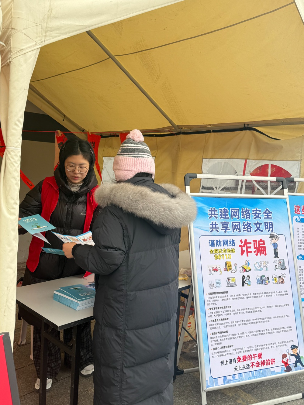 “叔叔,您看手机的时候要是收到这种中奖短信链接,千万别随便点开,可能是诈骗。”“阿姨,家里孩子上网课,也要提醒他们不要轻易泄露家里的信息啊。”志愿者们用通俗易懂的语言,结合日常生活中常见的网络诈骗案例,如假冒客服、网络钓鱼、虚假中奖信息、个人信息保护等,耐心细致地向群众普及网络安全风险隐患、防范电信网络诈骗技巧以及文明上网规范等知识。