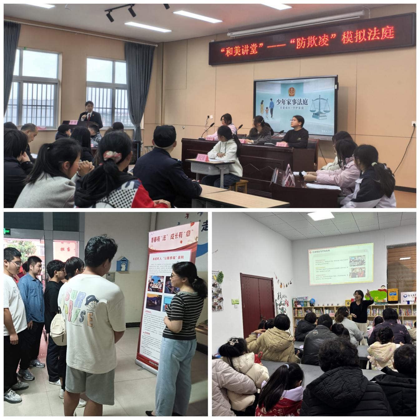 校社协同精准普法,定制学法“营养餐”。针对辖区内幼儿园、中小学、职业学校并存的实际,法治副校长根据不同年龄段青少年认知特点量身定制普法方案。幼儿园以漫画、动画为主,寓教于乐;中小学结合国旗下讲话、专题课堂、模拟法庭等强化互动体验;职业学校通过讲座、展板巡展等深化法治意识。司法所专题制作6块以漫画卡通为载体、结合真实案例的预防未成年人犯罪展板,在辖区学校巡回展出,让学生直观认识违法后果,学会遭遇侵害时及时求助。寒暑假期间,在各村(社区)公益托管服务开设“萌法课堂”,围绕交通安全、预防校园欺凌、未成年人保护等主题开展普法讲座,把法律知识送到青少年身边。