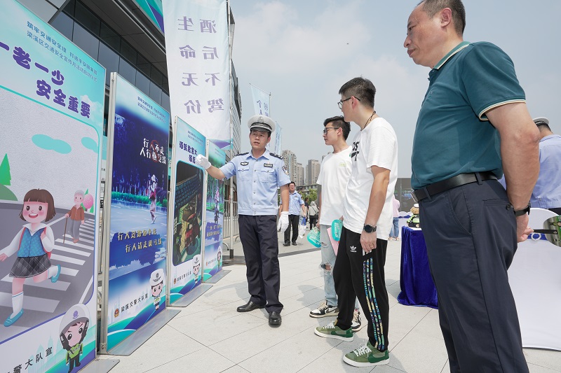 台上的节目精彩,台下的志愿讲解也细致到位。“安全带等于生命带,驾乘务必要系好。”“行人通过交通路口时,要遵守交通秩序,走斑马线,不闯红灯;驾驶机动车时,不要接打电话,不能分心驾驶”来自公安交警以及街道的工作人员认真地给过往的居民讲解,引导居民群众提高安全警觉性。