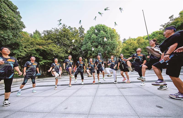 近日,锡城崇安寺经过新一轮升级改造后焕新归来,实现了人、建筑、场地与城市文化的更好融合。图为昨天清晨,市民在崇安寺公花园进行踢毽子活动。