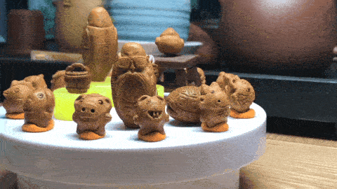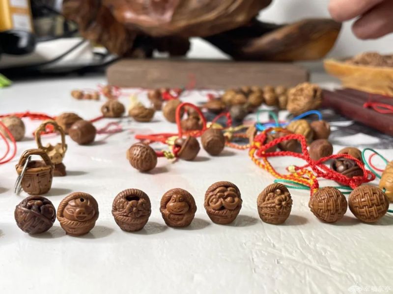 由于核雕讲究借纹借势,选择雕刻题材时需要观察桃核的纹理,从中寻找灵感,因此有时光是选核,就要耗费两三个小时。每雕刻一件作品,耗时短则三两天,长则一周甚至更久。