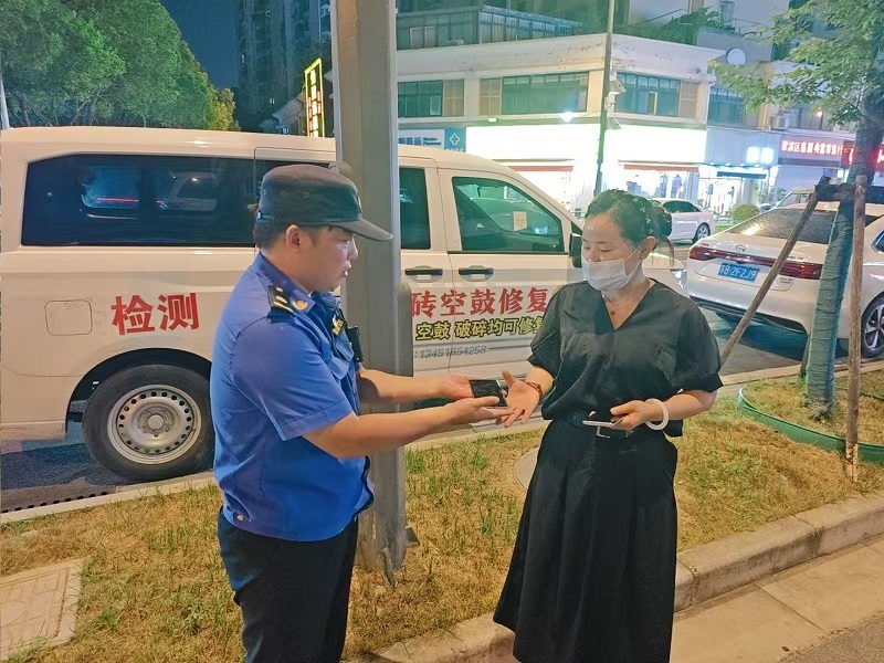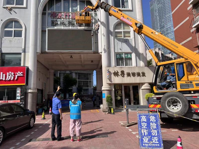 在中心商务区,城管队员不厌其烦地向沿街商户宣传城市管理的相关规定,帮助他们理解规范经营的重要性。面对一些不理解的商户,他们始终保持着微笑和耐心,用真诚和专业去化解矛盾,争取商户们的支持与配合。当巡查发现解放东路某小区配套用房高空遮窗广告存在安全隐患时,队员第一时间上报并及时联合专业施工人员对该处违规广告实施拆除。此外,垃圾清理、“三乱”清除,卫生死角排查,每一项工作都一丝不苟,全力为市民创造整洁有序的出行和生活环境。