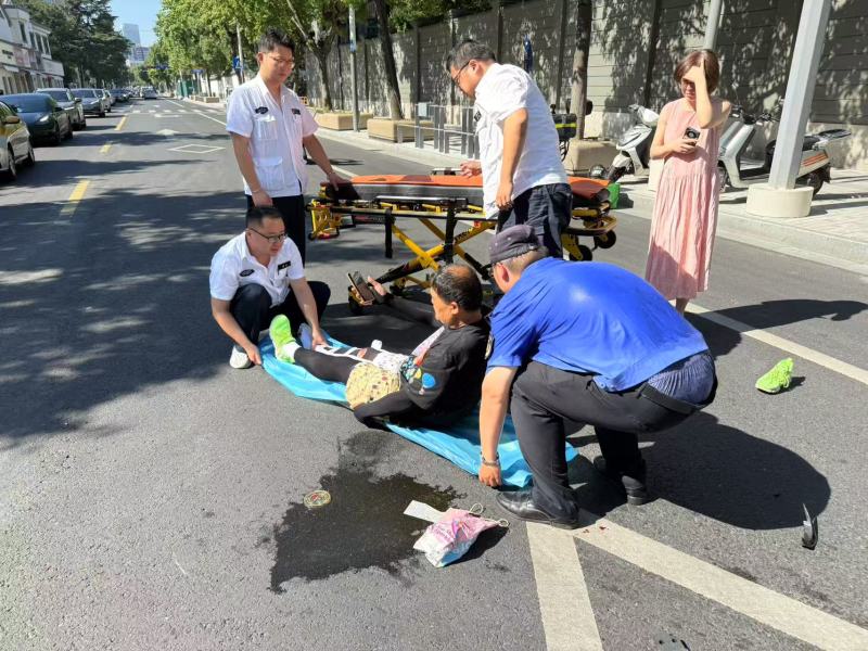 7月3日上午,梁溪城管崇安寺中队队员在健康路巡查时,发现一起突发交通事故,现场一名外卖骑手摔倒在地,手臂、腿部多处受伤流血,躺在地上无法动弹,经了解,一辆由北往南行驶的汽车临时起意想掉头,掉头时借了非机动车道,不慎把外卖骑手撞倒。正值上班高峰,车流人流量密集,城管队员第一时间将围观人群疏散,拨打120急救电话,并设置警戒标志。同时将骑手倒伏的电动车移至安全位置,帮助其收拾散落的物品,并仔细询问其身体状况。待救护车到达现场后,城管队员联合交警、医护人员将伤者抬上救护车。