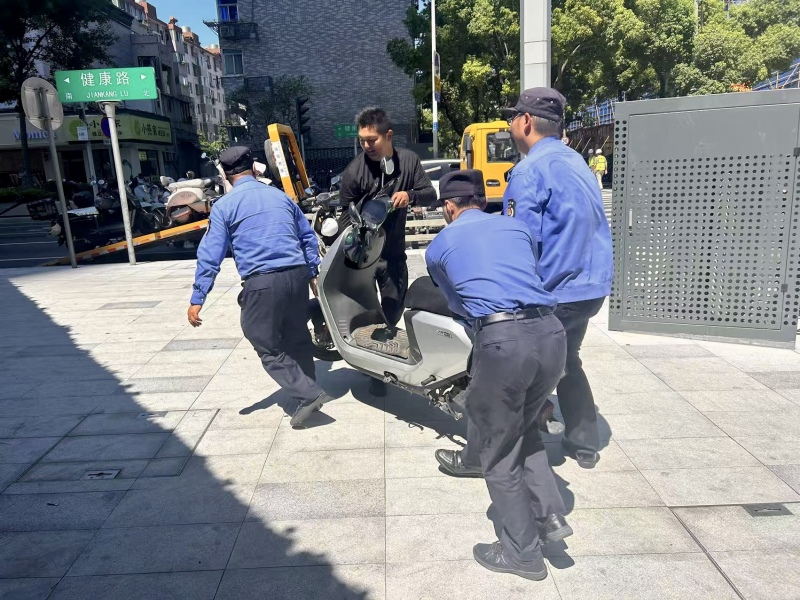 7月2日上午10点多,梁溪城管队员正在对辖区重点道路健康路、后西溪等路段区域进行专项管理,对非机动车乱停乱放、占用盲道、阻碍行人通行等现象开展规范整治与清拖,哪怕汗水湿透了衣衫,顺着脸颊滑落,他们也未曾停下脚步,因为他们深知,这是自己的职责所在。