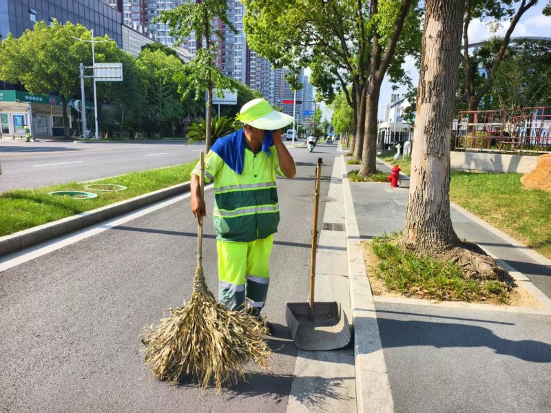 太阳像一块烧烫了的烙铁悬在城市的头顶上,柏油马路散发出热熔般的气息直烫脚底。然而,梁溪环发的工人们依旧顶着烈日清扫马路,擦拭城市家具,清理绿化带杂物,一干就是一天。豆大的汗珠犹如雨点般落下,肩头的衣服褶皱里凝了一层汗水干成的结晶盐花,但他们坚持用黝黑粗糙的手握着长柄竹扫帚扫过滚烫的地面。为做好城市绿化养护,确保市政设施运行良好,市政绿化工人选择靠近“滚烫”,做好道路绿化修剪、市政道板修复等工作,为城市靓丽环境贡献力量。