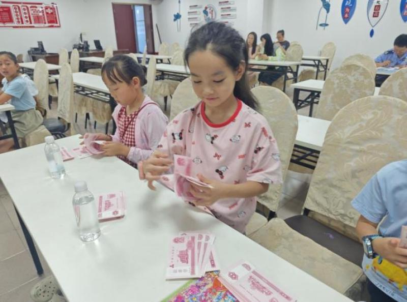 随后,小朋友们移步会议厅,聆听了一堂精心准备的金融知识启蒙课。工作人员化繁为简,生动讲解了基础的货币由来、储蓄的意义以及辨别假币的技巧。活动还特别设置了安全主题教育环节:社区民警带来了生动的反诈小课堂,通过贴近生活的案例,深入浅出地讲解防范诈骗的重要性,在孩子们心中播下了金融安全的种子。