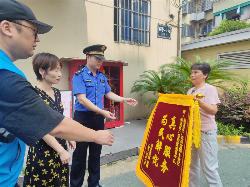 为确保整改措施落实到位,改造期间,副分队长胡申涛每天早上都会前往现场,既当“施工监督员”又当“商户协调员”。自7月21日改造完成以来,分队长丁晓冬会同社区工作人员连续2天现场监测噪音情况,主动上门回访居民,认真听取他们对整改效果的反馈。2楼居民高阿姨感动地说:“感谢你们!困扰了我们两个月的问题终于被解决了,现在晚上家里很安静,我们家人都睡得特别好。”