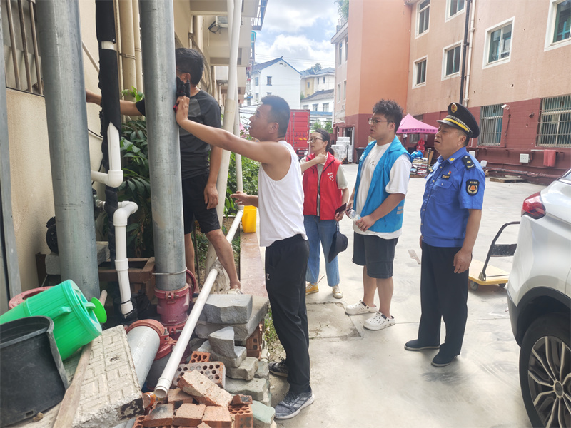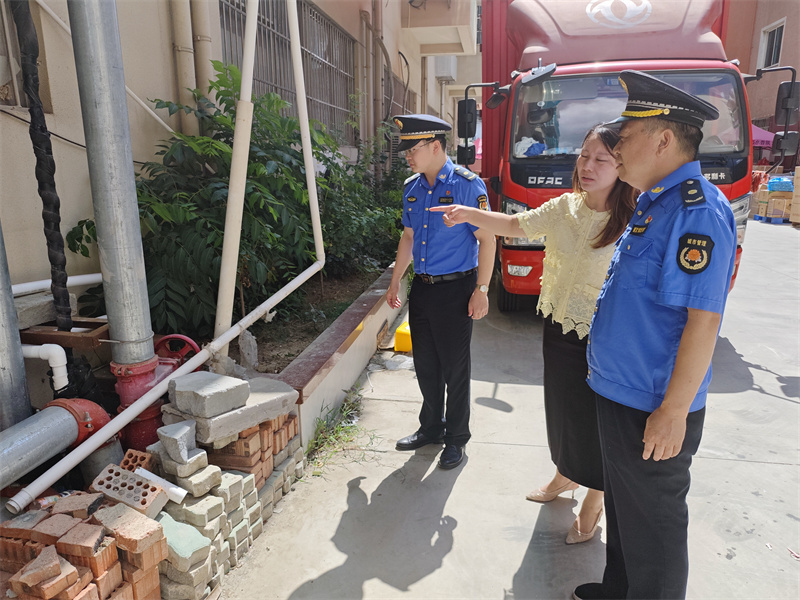 针对商户提出的浴场“进水通道唯一”的困难,中队制定“水泵内迁+管道延伸”改造方案,由于水泵所在的墙内部为一楼超市,需要就近破墙迁移,超市经理起初也是反对:“我这是刚装修的墙面,不想有破损”,丁华勇通过耐心的沟通,详细解释管道开口较小与顾客购物流线不冲突、且水泵体积小也不影响整体布局后,征得了超市经理同意。经过充分沟通协商,最终达成整改共识:将水泵迁移至超市内部,并加装隔音棉。