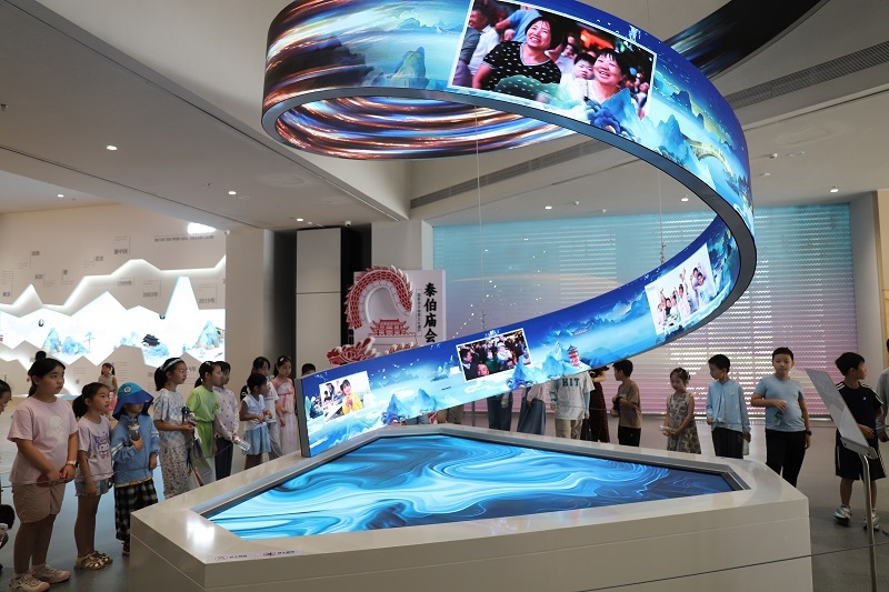 最令孩子们着迷的是“一渎九泾 兴吴开泰”伯渎文化特展。展厅通过实物展品、图文解说和多媒体视频,组成了一幅“时光画卷”。泰伯建吴的故事、商埠繁华的旧影,让孩子们在流动的历史中读懂了“以水兴城”的深意,身临其境地感受了时空的变迁。“原来我们的家乡变化这么大!”来自SK海力士职工家庭的轩轩用镜头记录下这些珍贵画面,将它们珍藏在记忆中。