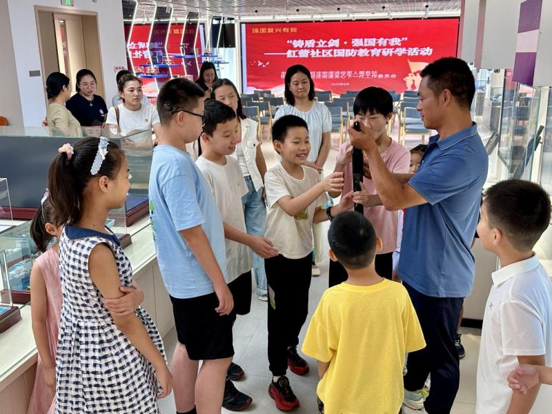 军事文化砺心,厚植青少年爱国情怀。为延续“强军有我”的文化基因,社区开展“铸盾砺剑・强国有我”青少年国防教育体验活动,让军事文化浸润青少年成长。学习军事模型知识时,他们认真聆听武器装备的发展历程;观看国防教育纪录片时,他们的眼神中充满对强国强军的向往;拓印“八一”主题团扇时,他们在墨香与扇韵中传承红色基因;征集“八一”主题作品时,他们用自己的画笔和歌声致敬最崇敬的军人,让家国情怀融入成长血脉。
