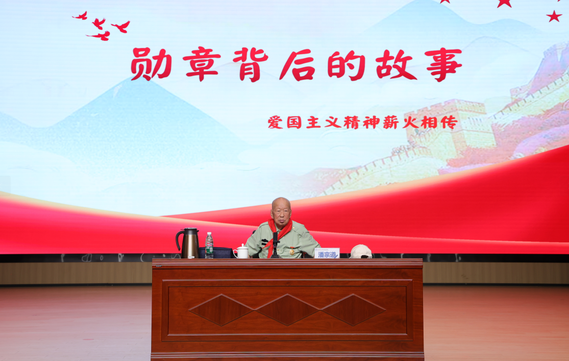 少先队员代表手捧鲜花,迈着坚定的步伐走到将军面前,郑重献花并敬队礼;潘宗道将军轻轻颔首,眼中满是欣慰,这一幕“老英雄与红领巾”的温情互动,悄然拉开了这场跨越代际的红色对话。这位从战火中走来的老战士,以饱满的精气神、洪亮有力的声音,将战斗履历化作鲜活教材,为全体少先队员送上一堂兼具历史厚度、国防温度与时代意义的“开学第一课”。