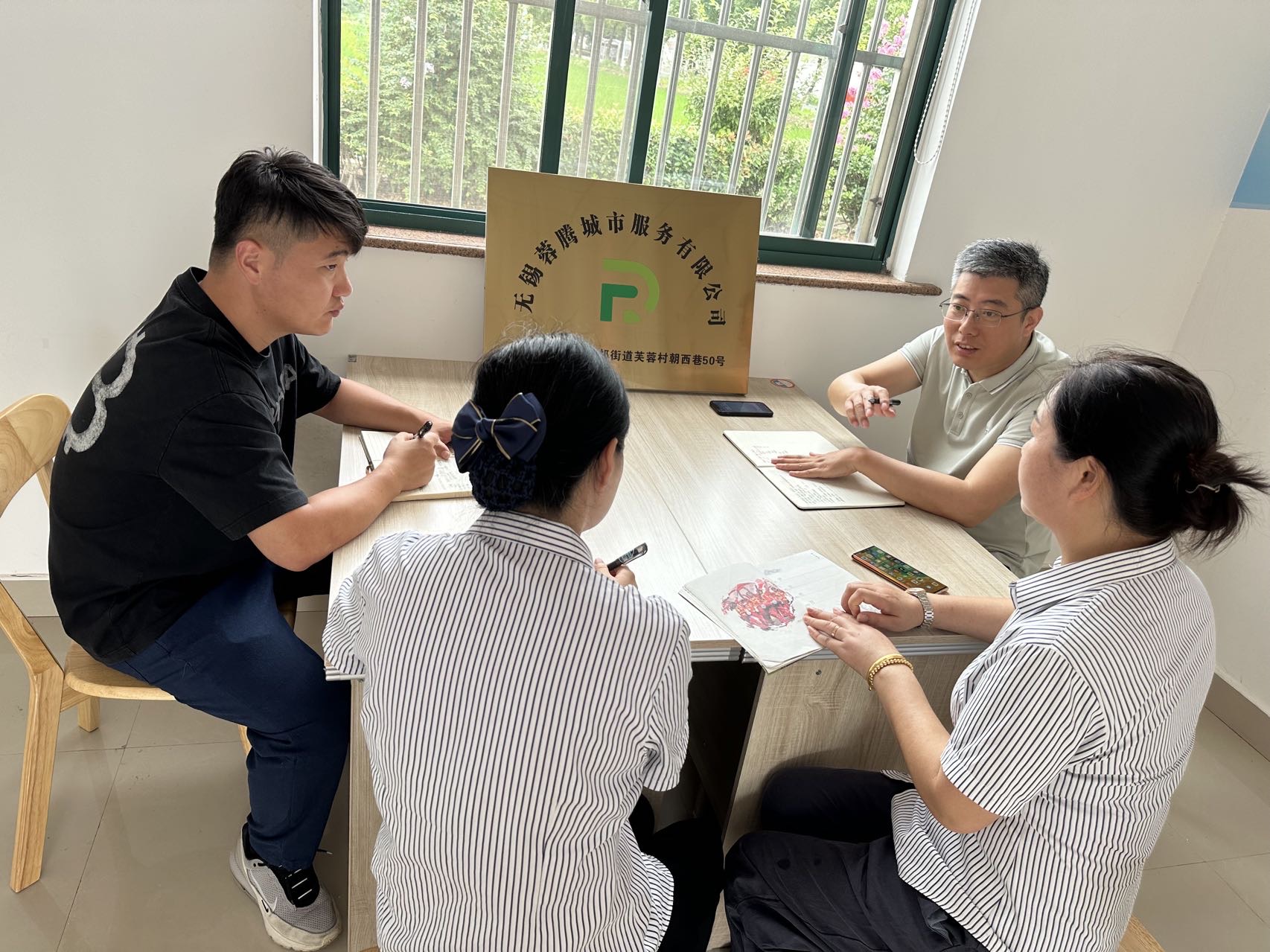 精准对接破壁垒,“各走其道”变“并肩同行”。立足辖区企业集中、村内劳动力富余充足的实际情况,村党总支深度梳理村企资源禀赋,找准发展需求的契合点,主动对接无锡祥和物业,联合成立无锡蓉腾城市服务有限公司。该公司聚焦企业高频刚需提供专业服务,如绿化、保洁、环卫等,既为铁建工科、威易发等9家企业就近就便解决后勤保障需求,又解决了村内10余名闲置劳动力的“家门口就业”问题,还每年带动村级经济增收超10万元。这种“村集体+企业+村民”的利益联结模式,将村企凝聚为“发展共同体”,有效激活了乡村经济的“造血”功能。