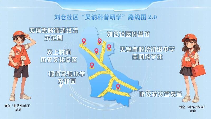 “以前带孩子参观科普馆要跑好几个地方,现在一条路线就能打卡地震模拟体验、无人机实操等项目,太方便了!”居民王女士兴奋地说。为打破科普服务的“社区圈”限制,刘仓社区升级发布2.0版“吴韵科普研学”路线图。该路线依托社区现有的“1+4”立体科普网络,串联起刘仓社区科普馆、天上村前科创阵地、堰桥街道防震减灾馆等新增的五大优质科普场所,让分散的科普资源从“单点发光”变为“集群闪耀”。