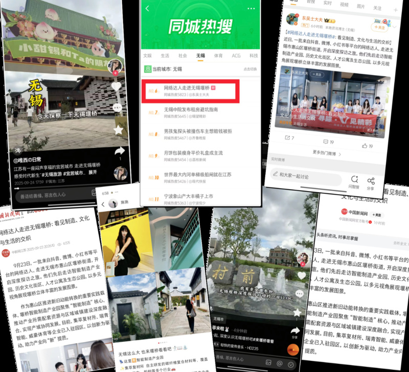 中国江苏网讯 近日,一批来自抖音、微博、小红书等平台的网络达人,走进无锡市惠山区堰桥街道,开启深度探访之旅。他们先后走访堰桥智能制造产业园、“天上村前”历史文化街区、空非国际人才社区及西漳公园蚕桑展览馆,以多元视角展现堰桥立体丰富的发展图景。此次受邀的网络达人,创作领域涵盖旅游、美食、文化等多个方面,在社交平台上的总粉丝量累计近200万,具有广泛的传播影响力。