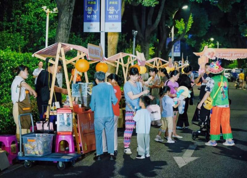 傍晚时分,晚会市集前人头攒动。非遗捏面人摊位前,老师傅指尖翻飞,转眼便将彩泥捏成栩栩如生的玉兔、嫦娥;汉服体验摊位前,孩子们化身 “小公子”“小仙子”,在镜头前摆出俏皮姿势;便民服务摊位上,志愿者们耐心为居民提供免费理发、血压测量等服务。在欢声笑语间,邻里关系悄然升温。