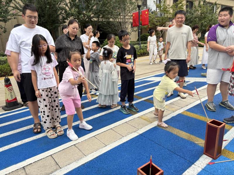 文明实践融文化,中秋韵味润人心。作为“我们的节日・中秋”系列文明实践活动的重要载体,本次活动将传统节日文化与文明实践深度融合,通过游戏的形式,让居民在沉浸式体验中感受传统文化魅力。“飞花令”环节里,居民们围绕“月”“秋”“家”等关键词吟诗作对,从“举头望明月”到“白云生处有人家”,经典诗句在现场流转,展现出深厚的文化底蕴。在“投壶”、“套圈”、“捞月”等传统游戏前,居民们有序排队、文明参与。活动现场,志愿者主动引导秩序、讲解游戏规则,让传统文化在轻松愉快的氛围中得以传承,也让“文明过节”的理念深入人心。