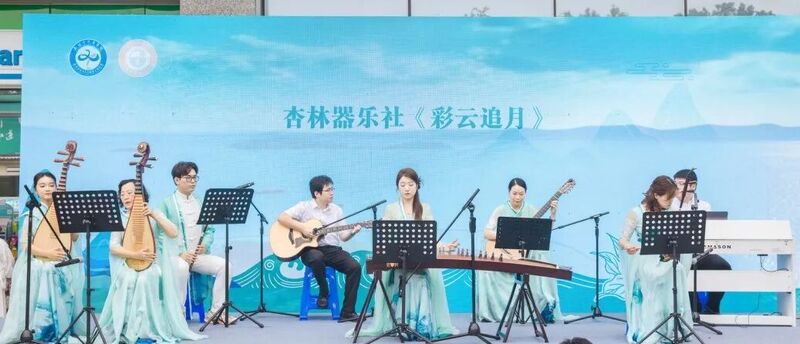 启动仪式上,杏林器乐社带来器乐演奏节目《彩云追月》,杏林天使功法表演队现场展示传统养生功法八段锦,韵味悠长的国风乐曲和刚柔并济的功法展示引来阵阵掌声。