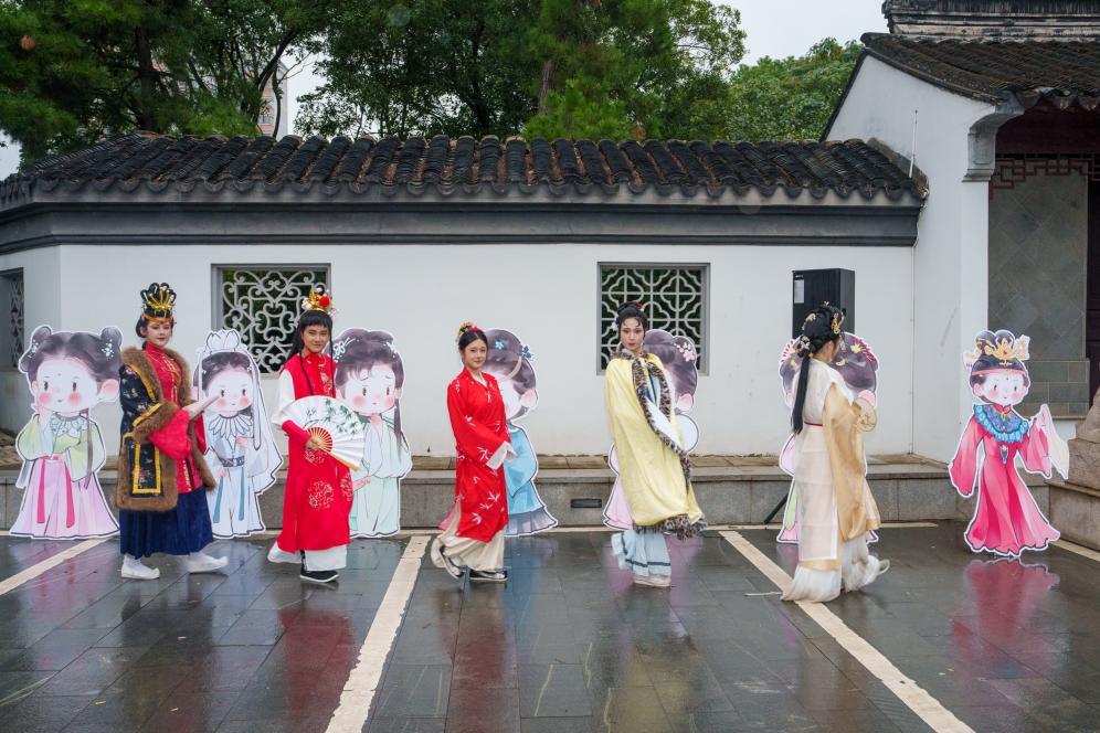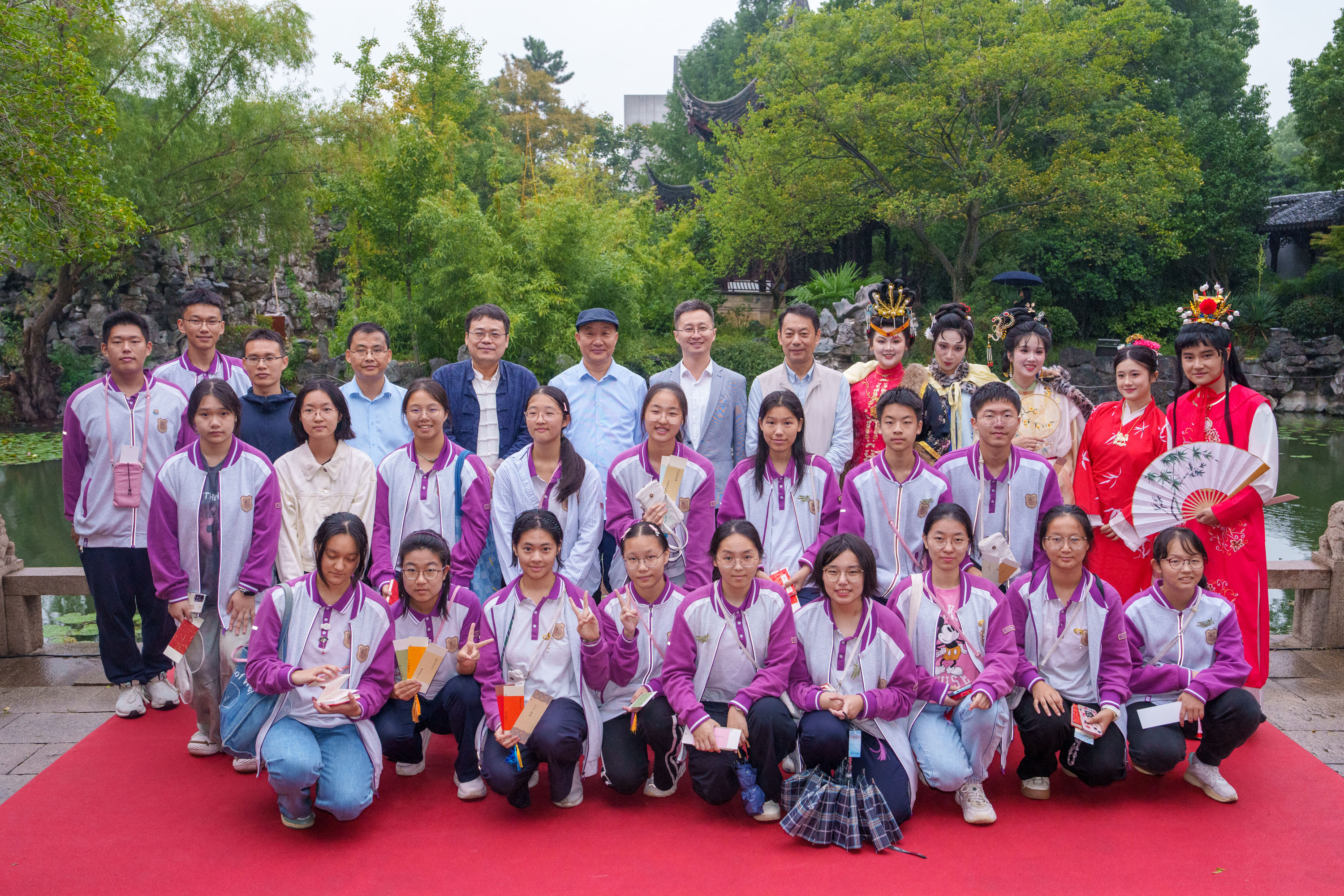 本次活动的最大亮点在于创新推出的实景沉浸式互动演绎“红楼游园会”。来自中国艺术研究院研究生院、江苏省锡山高级中学的40名参与者化身“红楼梦中人”,在锦绣园的亭台楼阁间开启了一段奇妙的文学之旅。