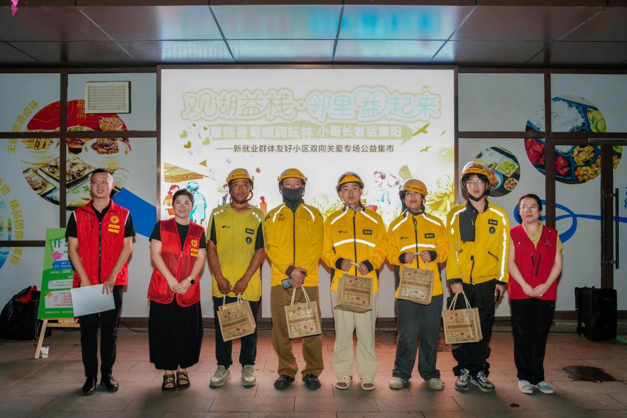 中国江苏网讯 秋意渐浓,菊香沁脾。无锡市新吴区新安街道耘林共享大厅外,“糕香菊暖润耘林,小哥长者话重阳——新就业群体友好小区双向关爱专场公益集市”热闹启幕。重阳糕的甜香、菊花茶的清润与邻里间的笑语相融,新就业群体的忙碌身影与长者的慈祥面容相映,双向关爱的暖意,在这个重阳佳节里缓缓流淌。
