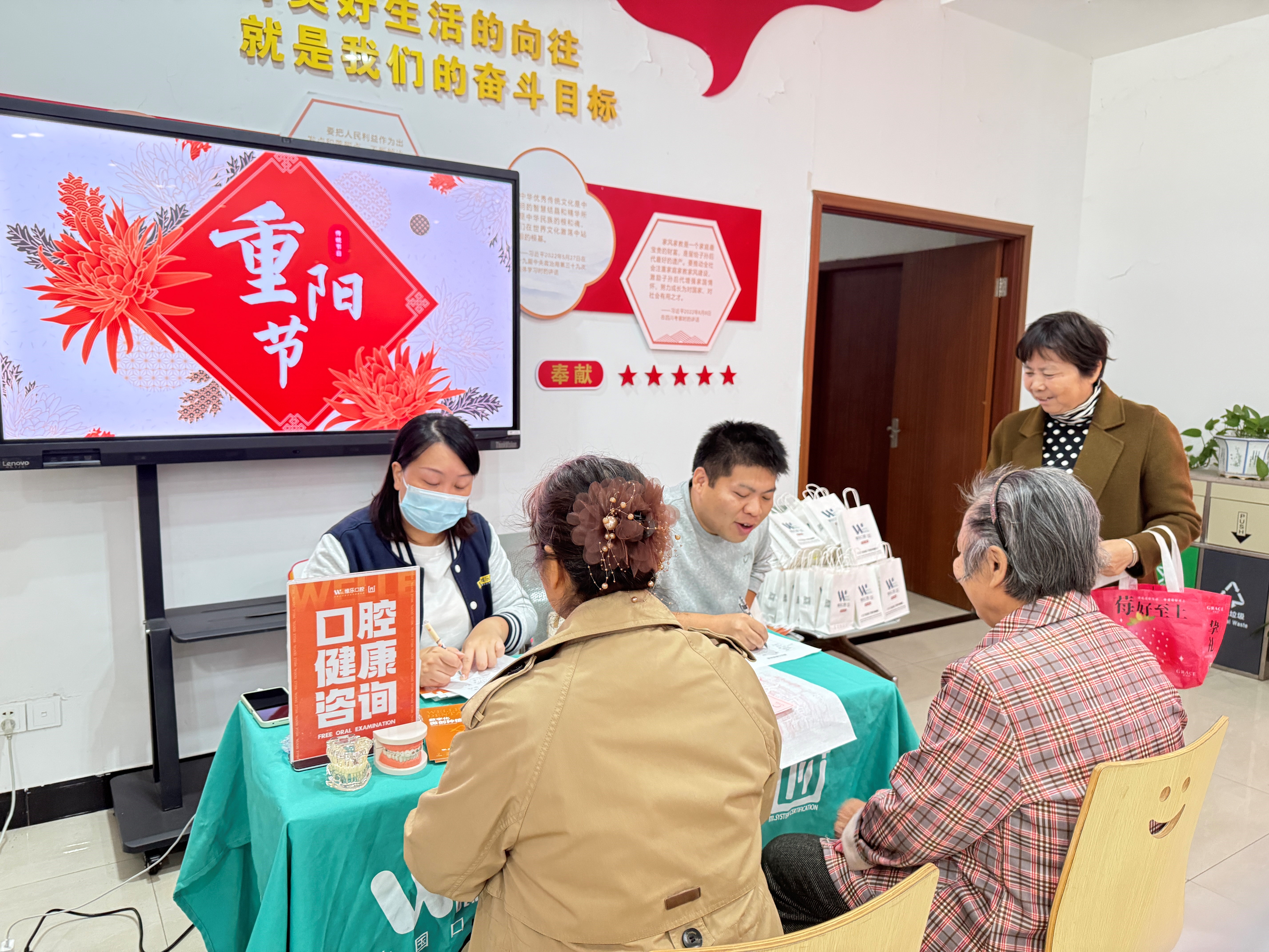 本次活动聚焦老年人实际需求,设置了全方位的便民服务区。在健康义诊区,医护人员耐心为老人测量血压、细致问诊;口腔义诊台前,专业牙医认真检查居民口腔健康状况;盲人按摩专区,技师们用专业手法为居民缓解肩颈疲劳。每个服务点位前都排起了长队,老人们在志愿者引导下有序参与。