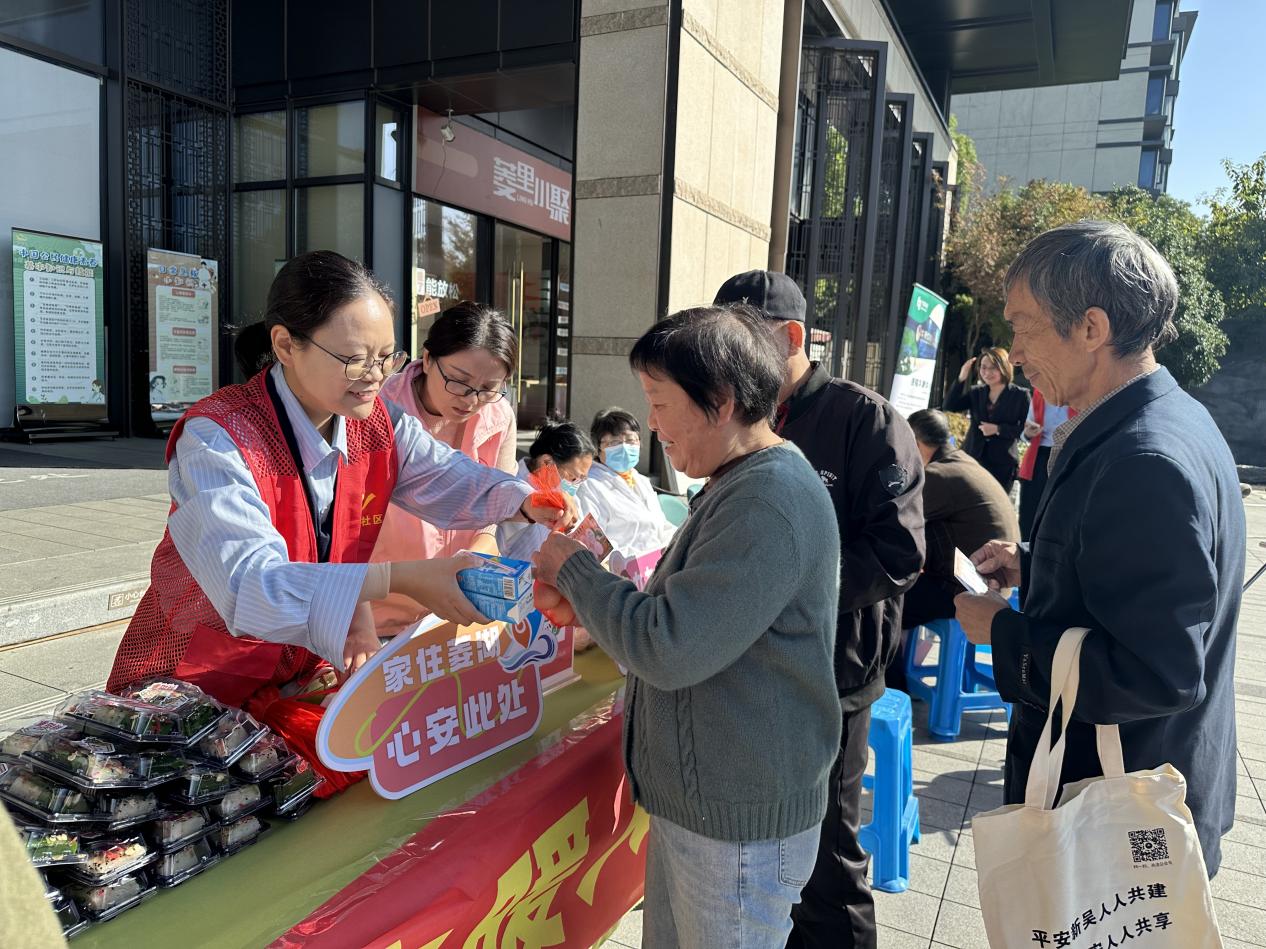 便民集市现场设置了重阳糕赠送、健康义诊、免费理发、政策咨询、磨刀修伞等多个服务摊位,每个摊位前都围满了前来体验的老人。在健康义诊摊位前,医护志愿者们耐心为老人测量血压、血糖,细致解答关于慢性病管理、秋季养生的疑问;免费理发摊位前,志愿者理发师根据老人的需求修剪发型,清爽的发型让老人们脸上露出满意的笑容······辖区内老人们纷纷表示:“不用跑远路,在家门口就能享受到这么多服务,太方便了!”