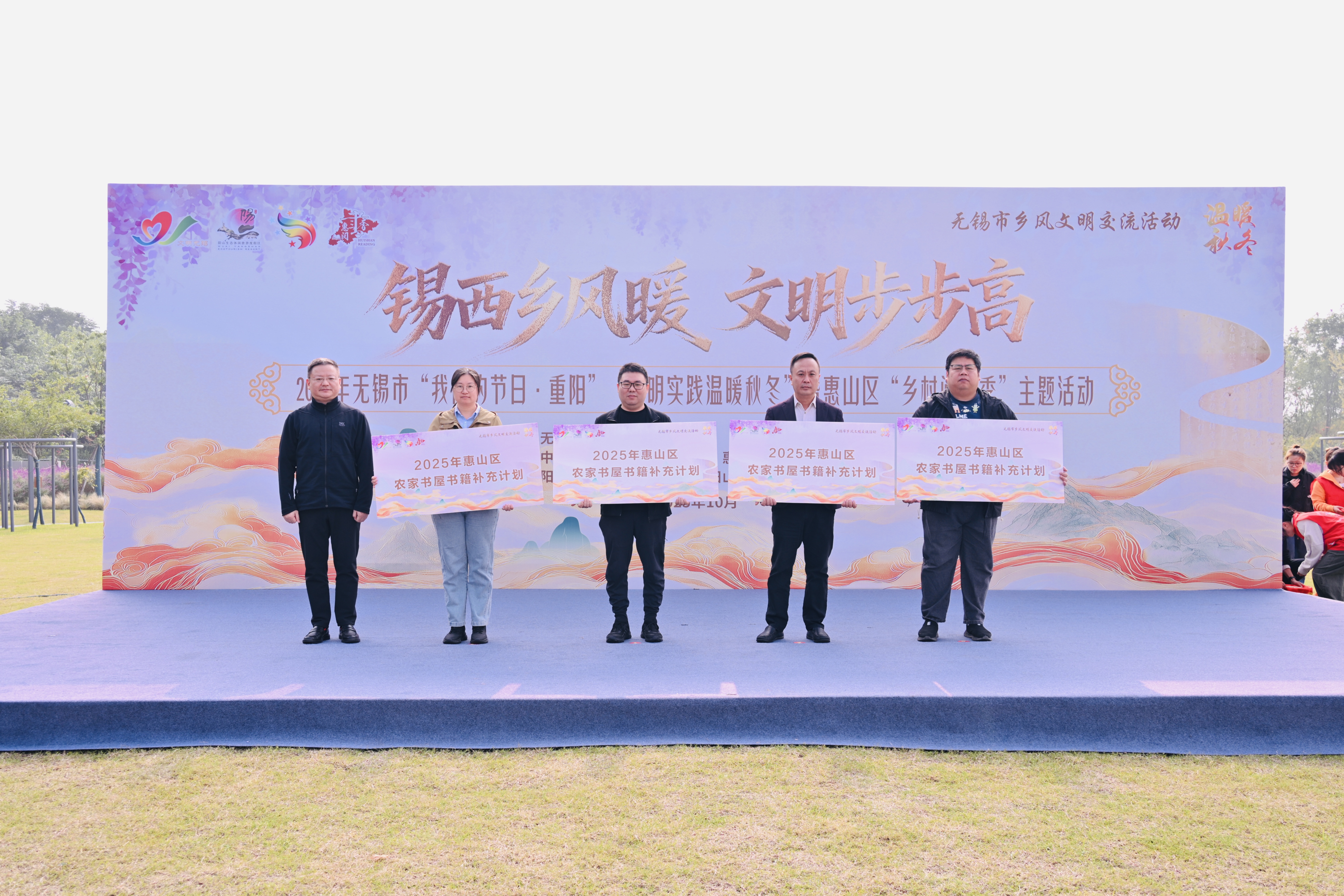 当重阳遇上书香,节日更添意蕴。本次活动的另一大亮点是“乡村阅读季”的深入推进。惠山区2025年度农家书屋书籍补充计划启动,阳山镇住基村、鸿桥社区、普照村、桃园村的农家书屋获赠书籍。此次书籍补充采用“自下而上、以需定供”的模式,精准满足,特别是老年读者的阅读需求。