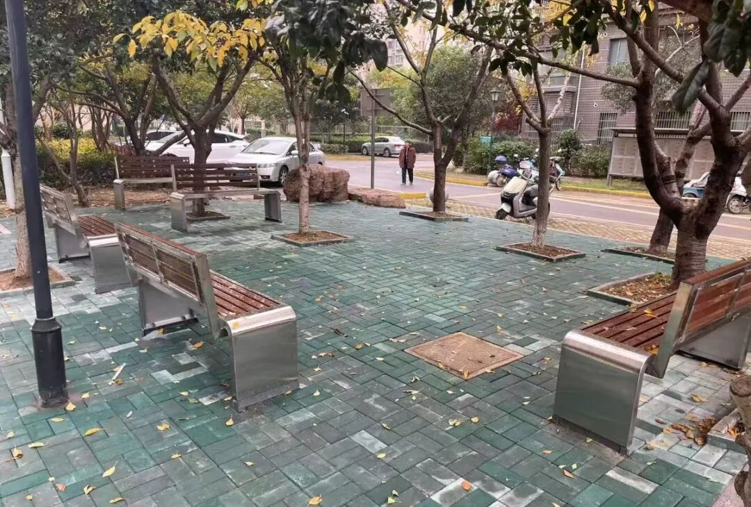 B区和D区的休息区也焕然一新。重新铺装的地面平整防滑,新添的防腐木座椅坐着特别舒服。傍晚时分,这里总是坐满了人,下棋的、聊天的、看孩子玩耍的,成了小区最热闹的角落。