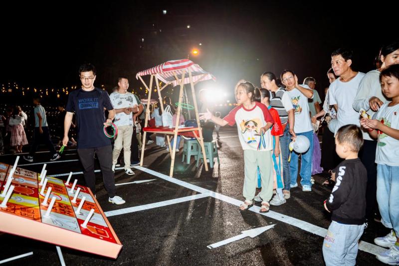 更值得一提的是,这片场地实现了功能“一键切换”。平时作为规范的停车场,在非停车高峰时段,则可迅速转变为“邻里互动空间”。中秋时节,这里举办了首场社区活动,灯光点缀、游戏互动,居民欢声笑语,其乐融融。