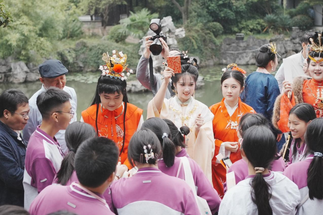 从“书房读书”到“园林品书”。活动突破传统阅读的静态模式,将《红楼梦》的经典场景与锦绣园的亭台楼阁、小桥流水一一对应。参与者跟随由演员扮演的“贾母”“王熙凤”等人物,从冯其庸学术馆步入锦绣园。移步换景之间,仿佛穿越时空,亲见“林黛玉焚稿”的凄美,参与“中秋诗会”的雅趣。这种“行走的阅读”,让文字跃然眼前,参与者不再是旁观者,而是融入情节,收获独特的沉浸式体验。