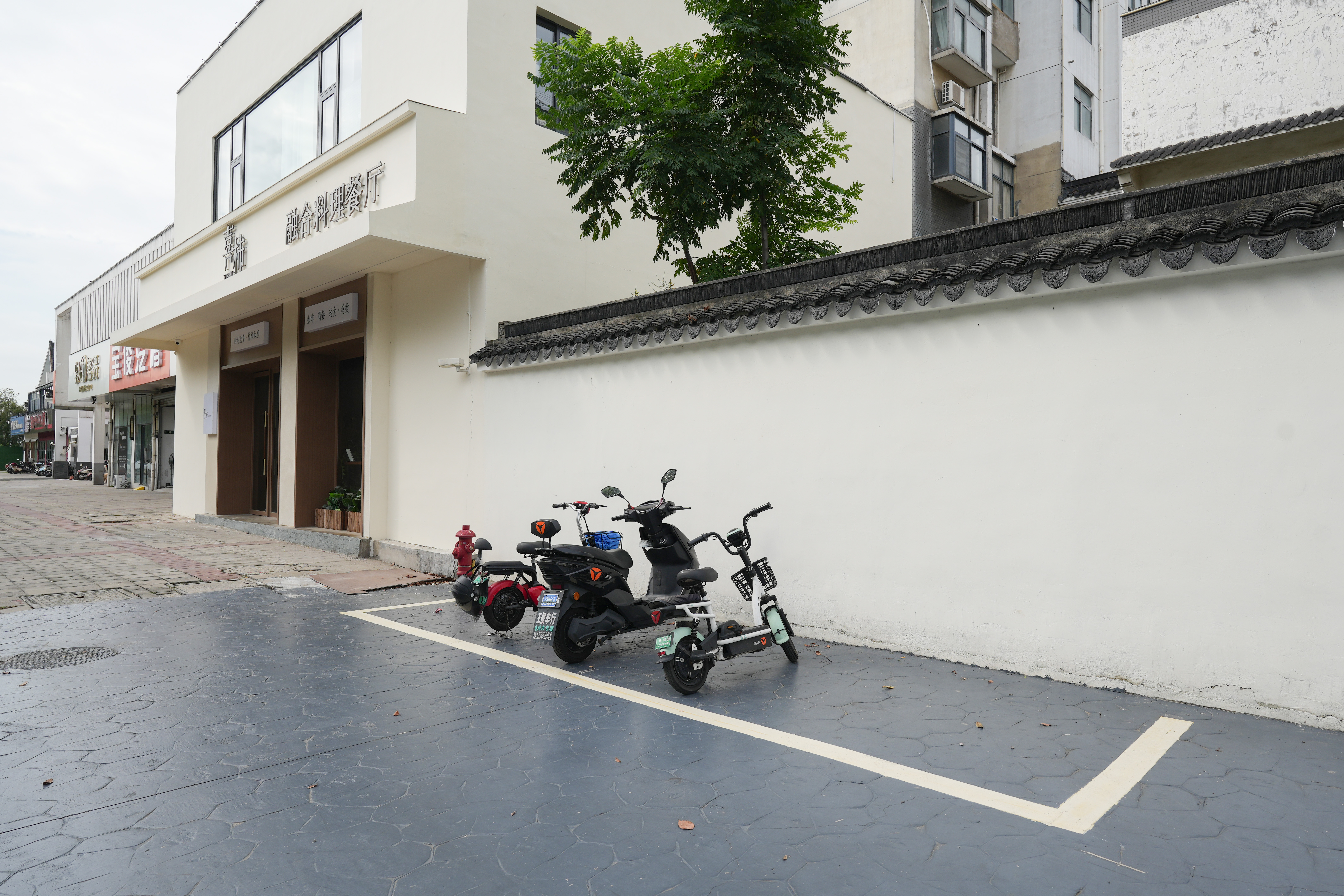 规范秩序,贴心设置非机动车泊位。在规范机动车停放的同时,街道也重点关注非机动车的停车秩序。特别是针对外卖、购物等临时停靠需求,选择商铺门口、繁华地段中心区域等划设非机动车停放专区,引导市民养成文明停车习惯。其中,海瑞路大屏下特意划设外卖车辆专用停车位,这一贴心举措不仅提升了外卖骑手的送餐效率与安全性,也避免了非机动车占用机动车道或盲道的问题,提升了市容环境的有序度。