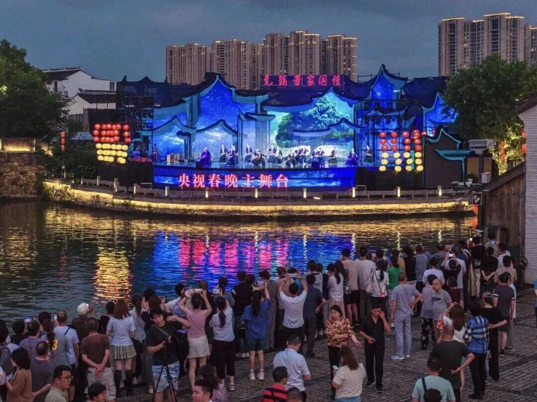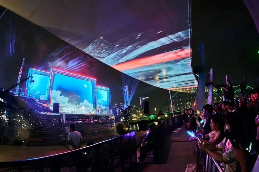 街头巷尾,音乐同样无处不在。南长街“今夜梁宵”、运河艺术公园等新型音乐空间,成为年轻人打卡、演出、交流的热土。南尖公园船舞台更是独具特色,经过升级改造后,以全镜面船体、水幕全息激光投影等科技装备,从历史载体蜕变为融合科技金属风与运河水乡韵味的先锋艺术装置。今年7月,这里以“南尖潮汐音乐会”华丽回归,贰佰、钢心乐队等音乐人带来民谣与摇滚盛宴,观众可在天然草坪区赏演,或漫步运河边感受晚风与音乐的交织。